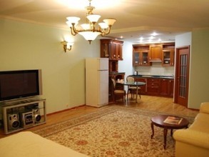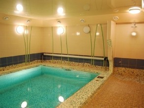 Просторные помещения банного комплекса оформлены в стиле модерн с преобладанием светлых тонов и обставлены современной мебелью. В гостиной располагается вместительный мягкий диван, большой плазменный экран с телевидением, где можно посмотреть спортивные трансляции или воспользоваться видеосистемой и включить любимый фильм на DVD. Здесь же установлен аудио проигрыватель и караоке, что позволит устроить зажигательную вечеринку с танцами и песнями.